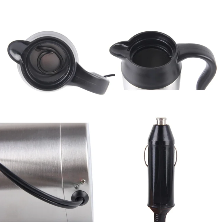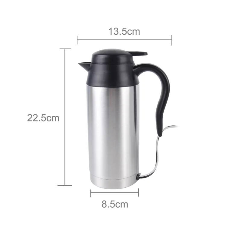 HJ-18A Stainless Steel Electric Mug 750ml DC 12V Car Electric Kettle Heated Mug Car Coffee Cup With Charger Cigarette Lighter Heating Cup Kettle Insulated Water Heater Mug