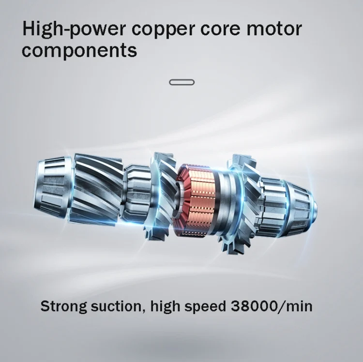 1. High-power copper core motor components, strong suction, high speed 38000/min
