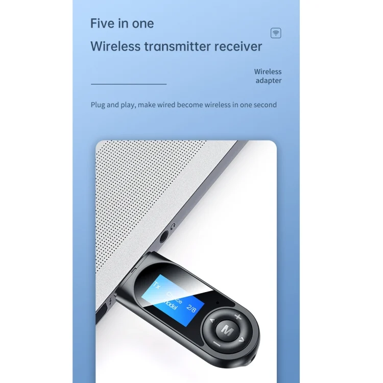 2. Function: Bluetooth audio receiving and transmitting combo, support hands-free call, LCD screen display