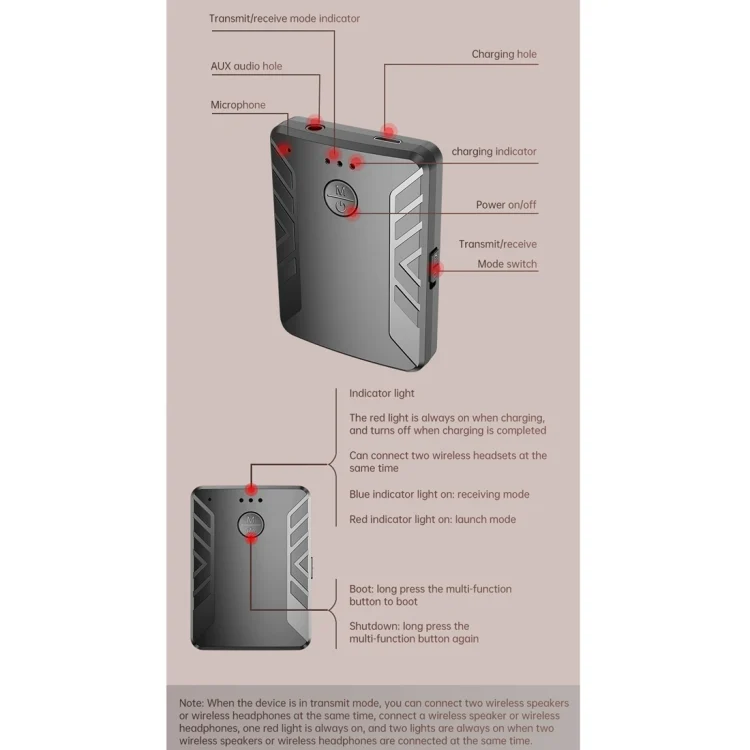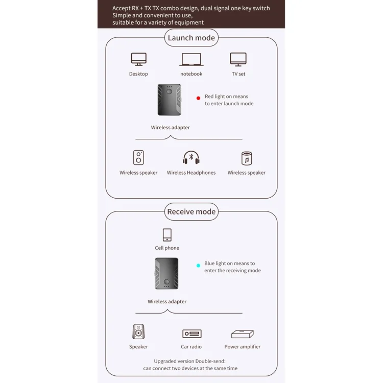 T-19 Bluetooth 5.0 2 In 1 Bluetooth Audio Adapter Receiver Transmitter