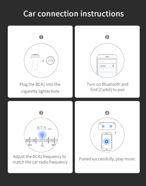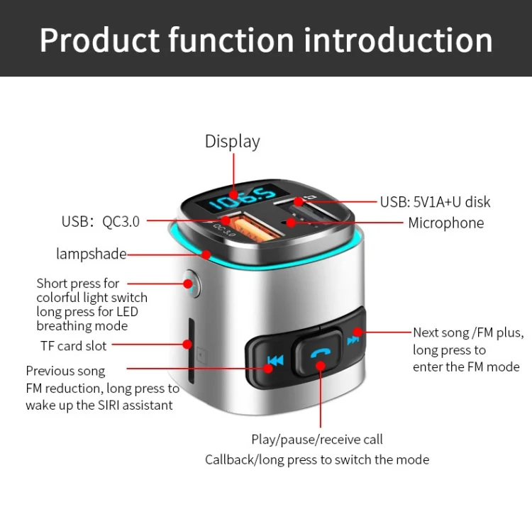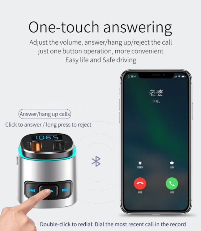 BC41 Multi-Functional MP3 Player, Bluetooth Receiver, USB Charger, Automobile Cigarette Lighter