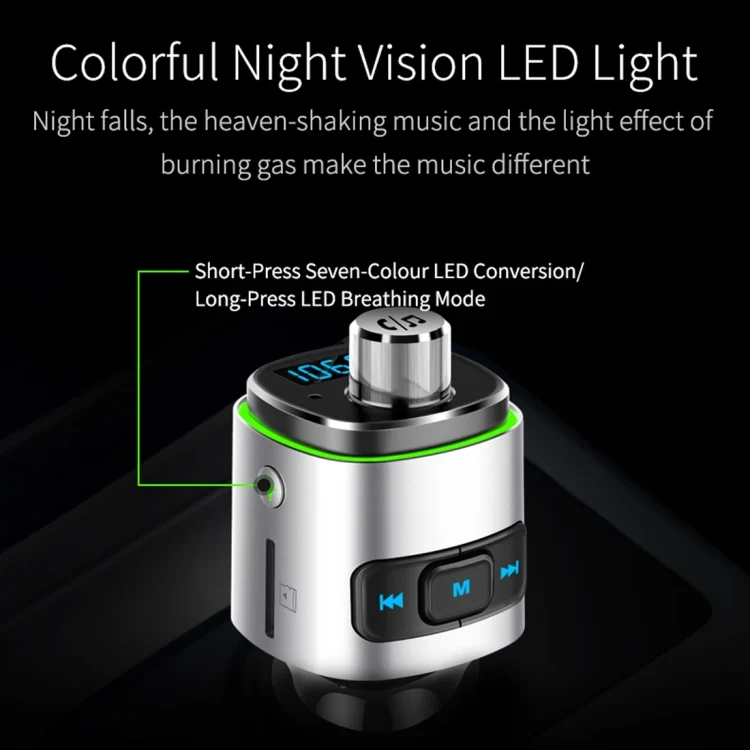 BC42 Bluetooth 5.0 Multi-function Car Colorful Atmosphere Lamp MP3 Player, Support TF Card & U Disk & FM