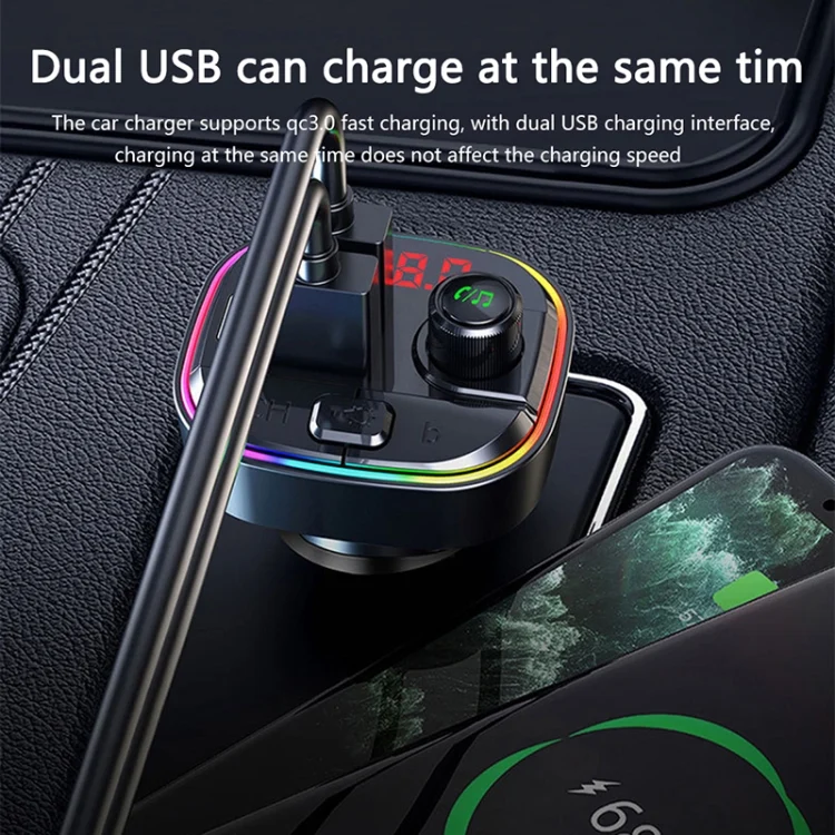 C13 Multifunctional Car Dual USB PD Fast Charger Bluetooth FM Transmitter with Atmosphere Light