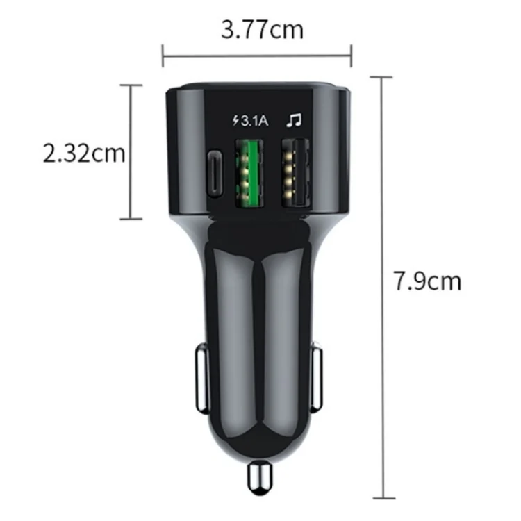 P24 1 Type-C + 2 USB Car Charger Car Bluetooth Music Player Voltage Detection