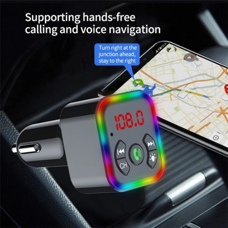 Colorful light Car Hands-free Call Bluetooth Receiver Support U Disk MP3 Player