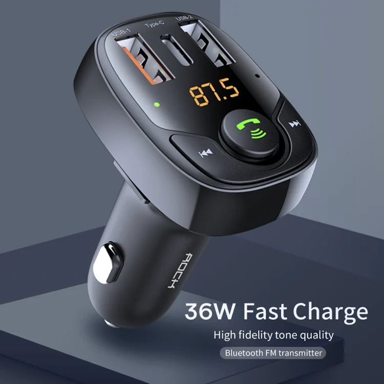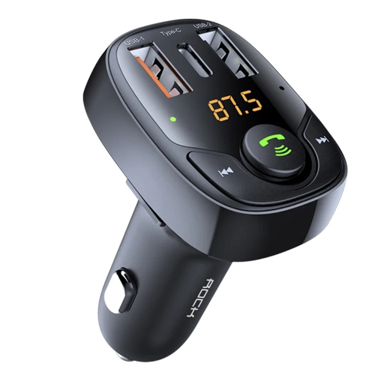 ROCK B301 Dual USB + PD Bluetooth 5.0 FM Transmitter & Car Charger, Support TF Card / U-disk