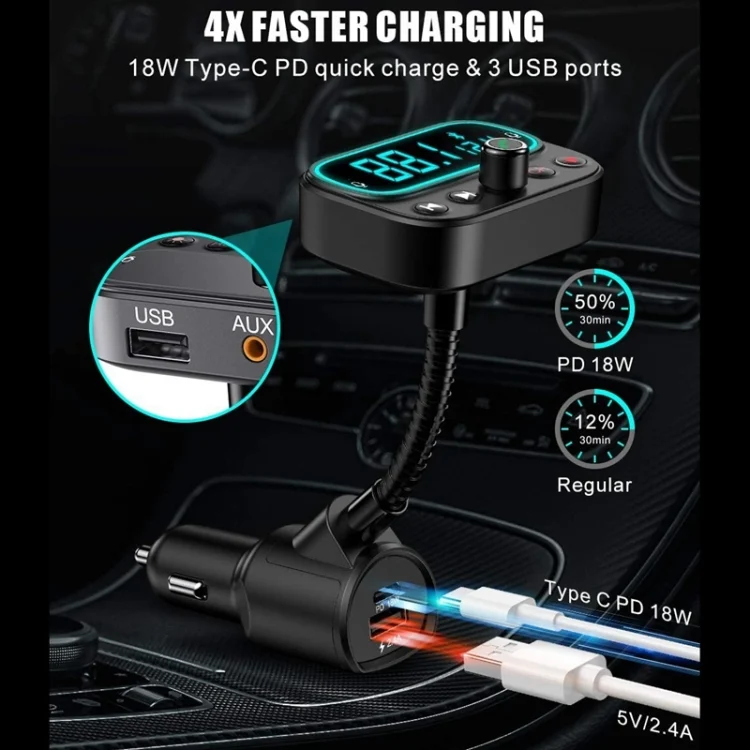 T67 Bluetooth 5.0 Car MP3 Music Player FM Modulator Transmitter Wireless AUX Adapter Hands-free
