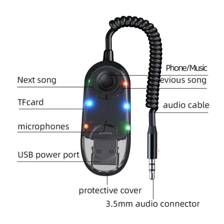 W9 Car Bluetooth Music Receiver USB Bluetooth 5.3 Adapter Wireless Audio Receiver