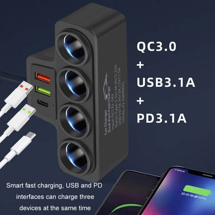 1 to 4 Q3.0 Car Cigarette Lighter Fast Charging 120W Car Conversion Plug