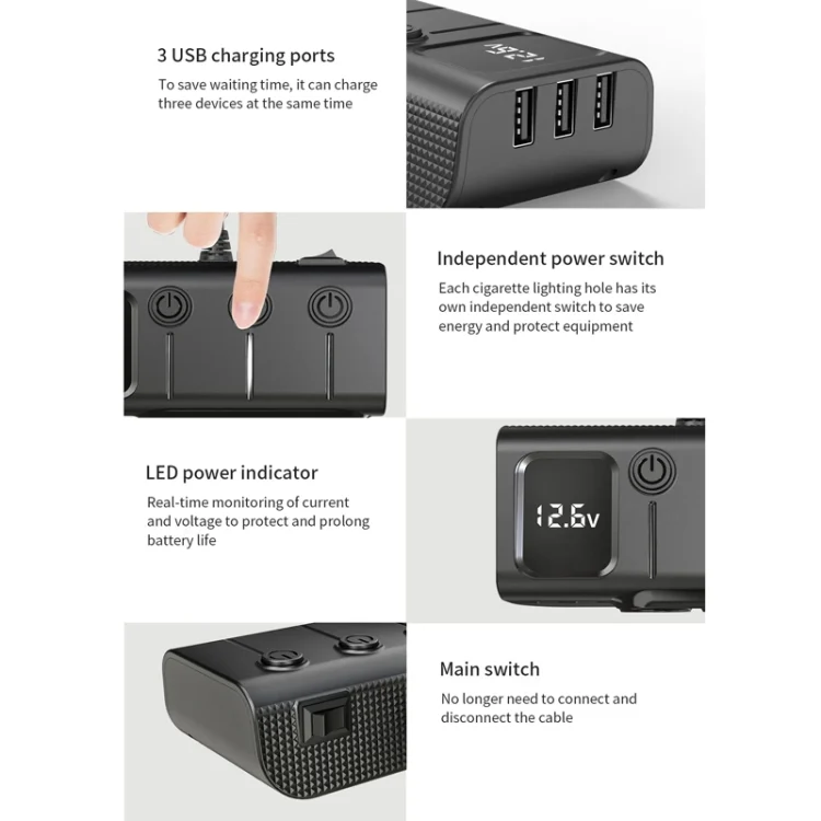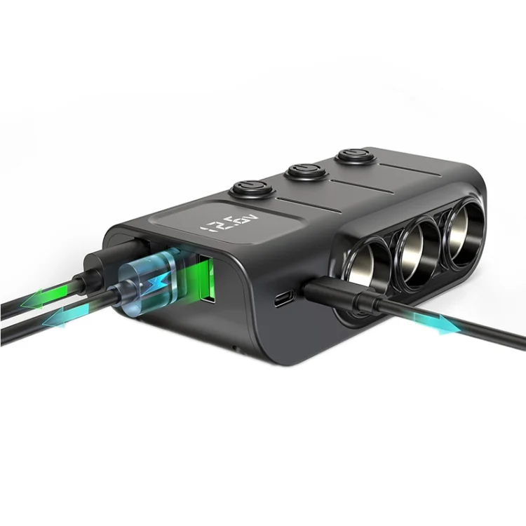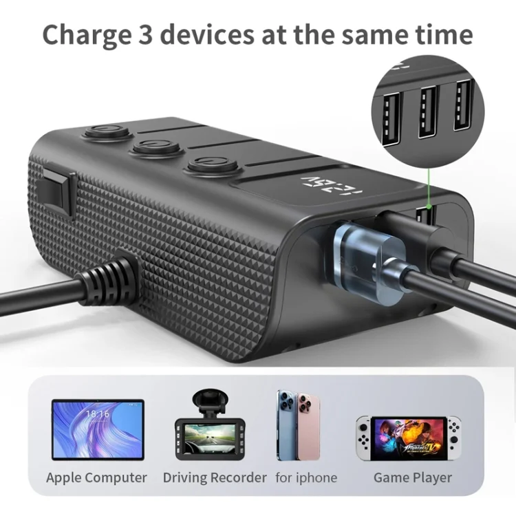 9. Multifunctional three-in-one car charger and cigarette lighter supports 12-24V car design to meet travel charging needs