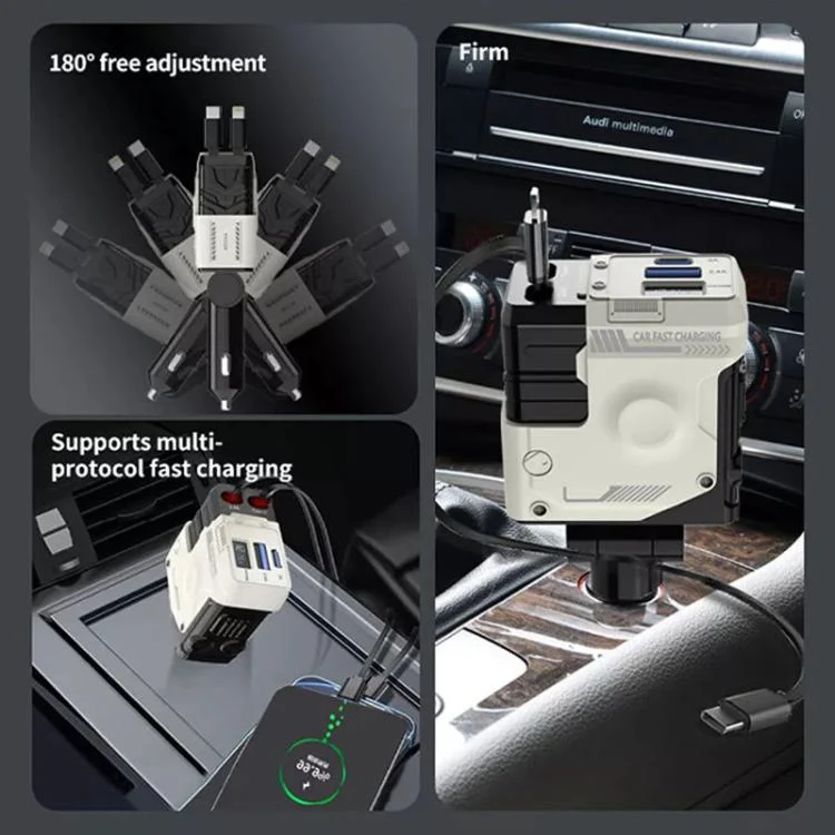 A1 Car 4 In 1 Digital Fast Charger With Retractable Cable