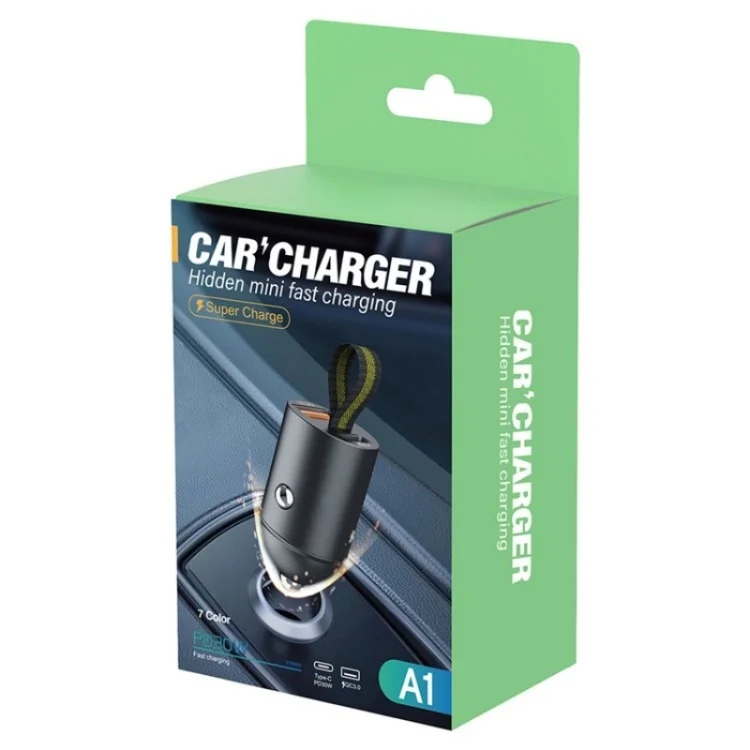 A1 QC 3.0+PD 30W Dual Car Charger Hidden Car Cigarette Lighter Phone Fast Charging Adapter