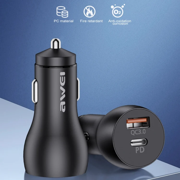 awei C-822 18W PD 8 Pin + 18W QC 3.0 USB Interface Car Charger