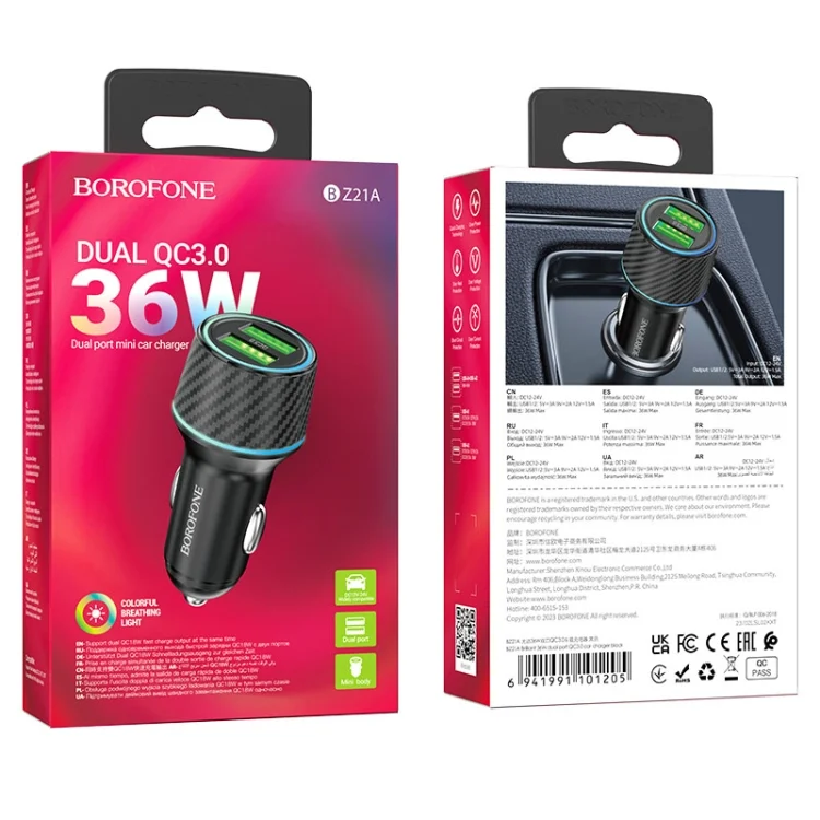 BOROFONE BZ21A Brilliant QC3.0 Dual USB Ports Fast Charging Car Charger – Qty: 5 Units