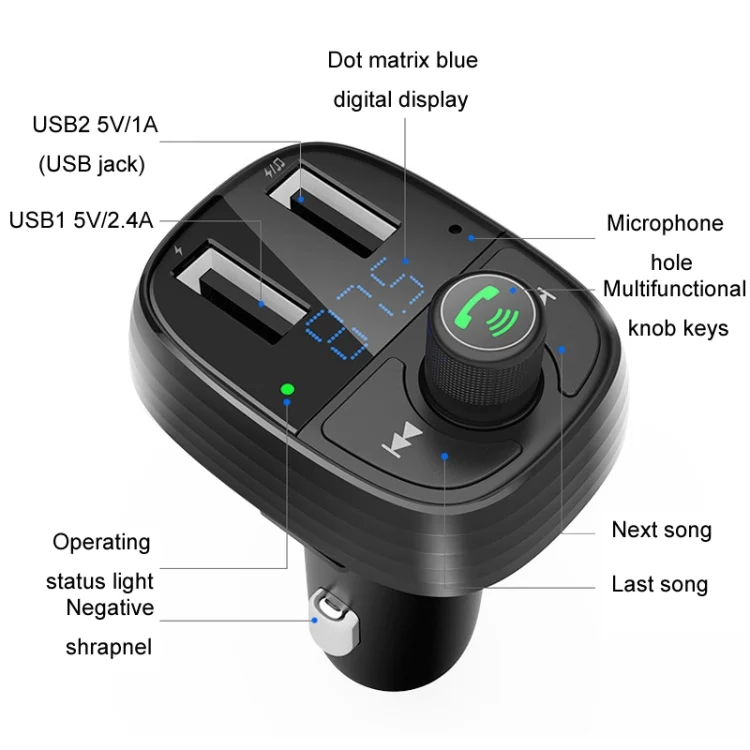 Car Bluetooth Fast Charger Receiver Auto One To Two Charger Cigarette Lighter
