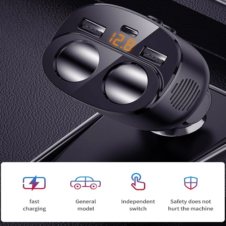 Car Charger With Switch Double Cigarette Hole Car Socket