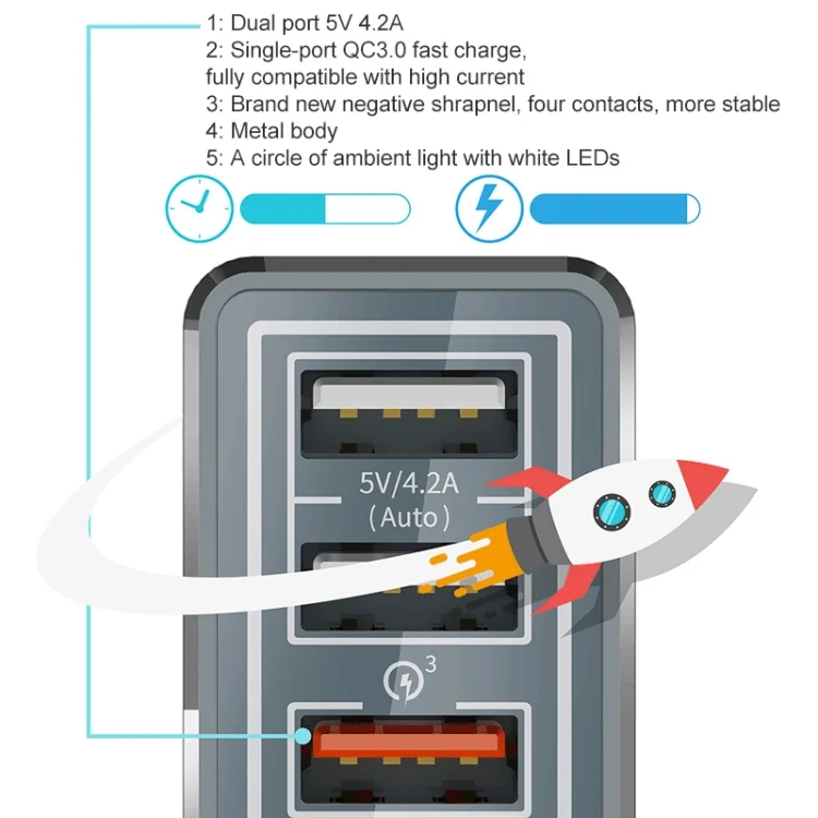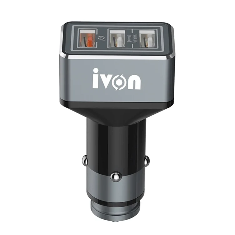 IVON CC36 39W 7.2A QC 3.0 USB + Dual USB Car Charger with Ambient Light