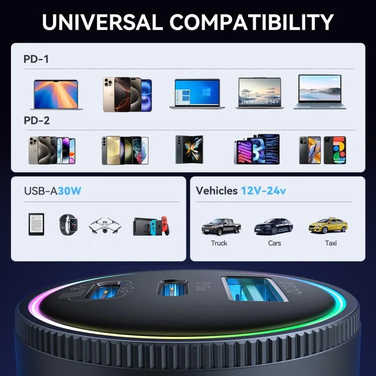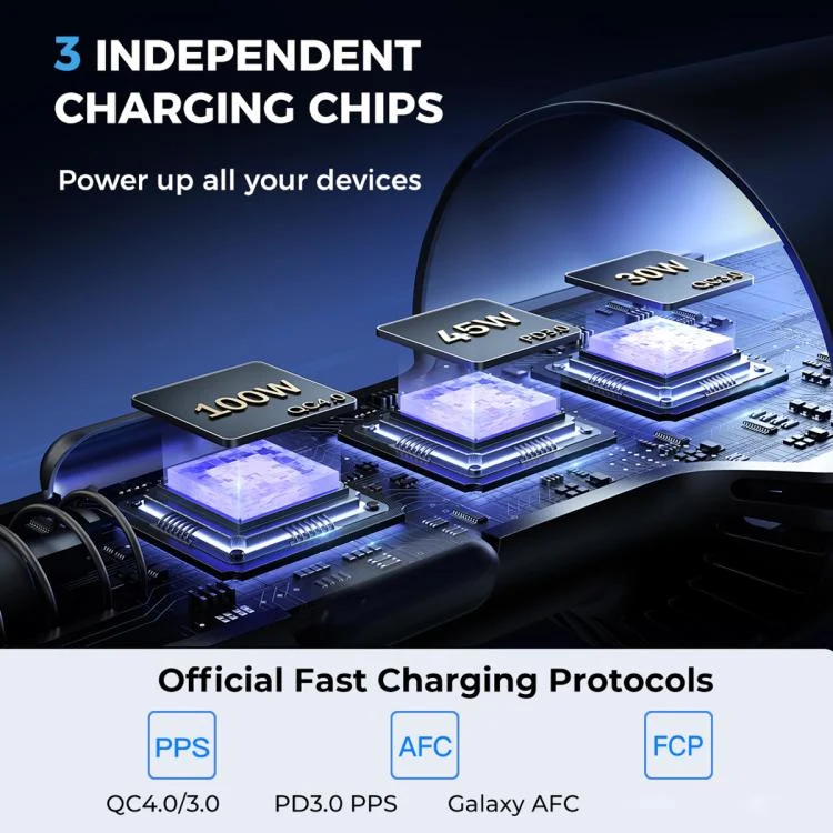 2. Compatible with QC4.0, PD3.0, PPS, QC3.0, AFC and FCP fast charging protocols.