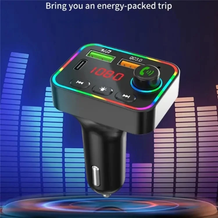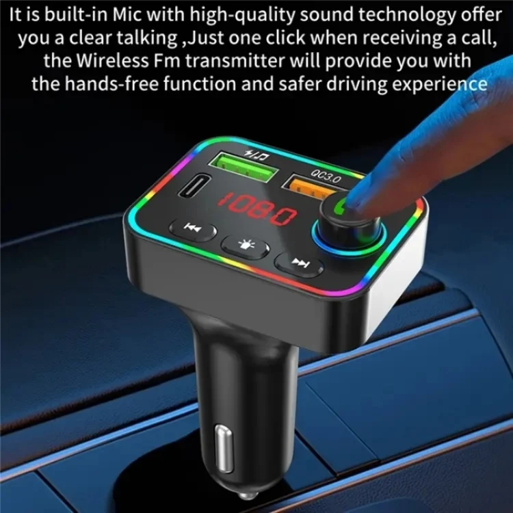 PDF4 PD 25W Fast Car Charger with Hands-Free Calls FM Transmitter 7-Color Led Lights MP3 Player