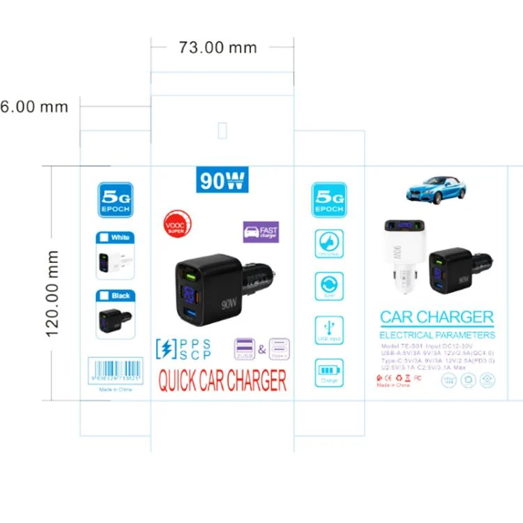 QC4.0 30W + PD3.0 30W LED Digital Display Car Charger