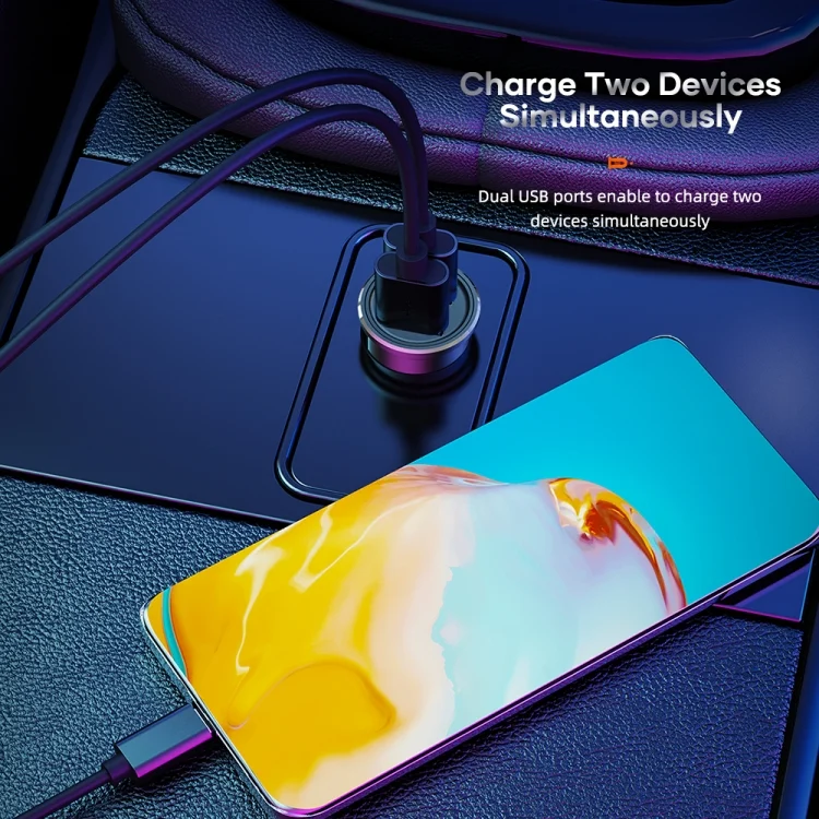 QC USB + USB-C / Type-C Dual Ports Fast Charging Car Charger with Luminous Aperture