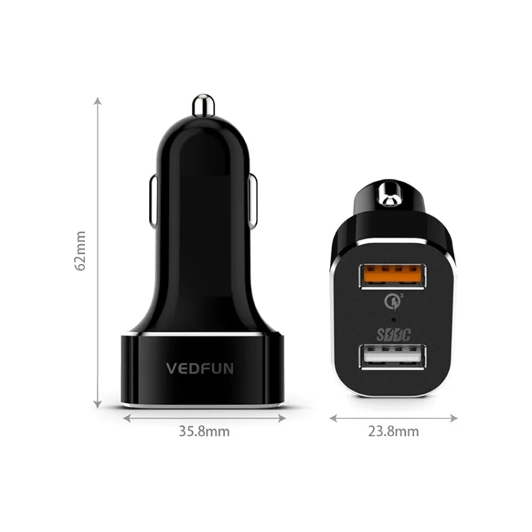 VEDFUN TurboDrive C210 Dual Ports Quick Charge 3.0 + SDDC Technology USB Car Charger for Smartphones and Tablets