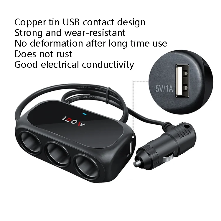 1. Dual USB charging ports + 3 cigarette lighter ports, smart, safe and convenient, which can be used to charge multiple devices at the same time
