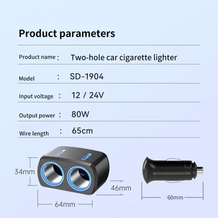 1. Dual Socket Design: Converts one cigarette lighter port into two, allowing you to power multiple car accessories simultaneously.