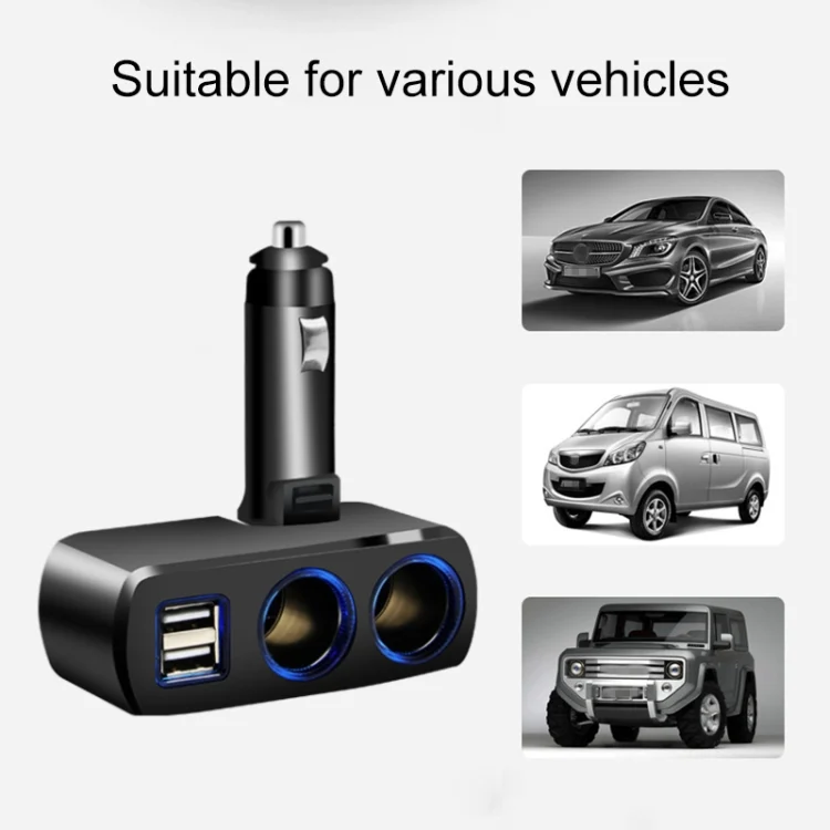 2. This product is a one-in-two cigarette lighter socket with a total output power of 80W; a total USB output current of 3.1A, which can charge an IPAD and a mobile phone at the same time.
