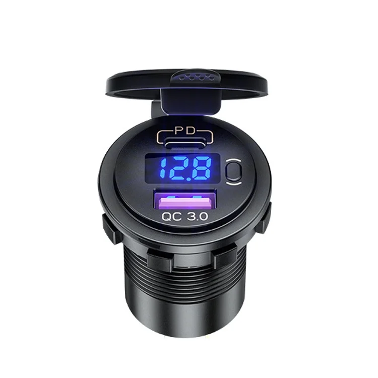 12V Modified Car USB Charger With Voltage Display PD QC3.0 Socket
