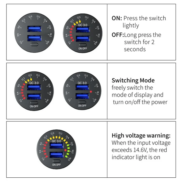 Car Motorcycle Ship Modified With Colorful Screen Display USB Dual QC3.0 Fast Charge Car Charger