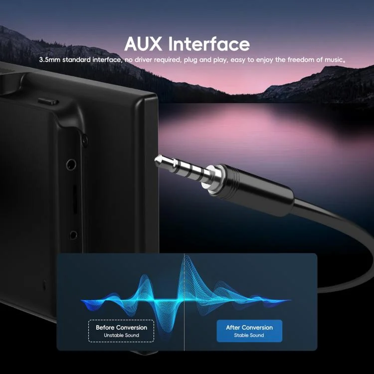 6. Support AUX wired connection and FM transmitter: All the sound of the player can be transmitted to the car audio system via AUX cable or FM transmitter, and listen to music through the car audio system.