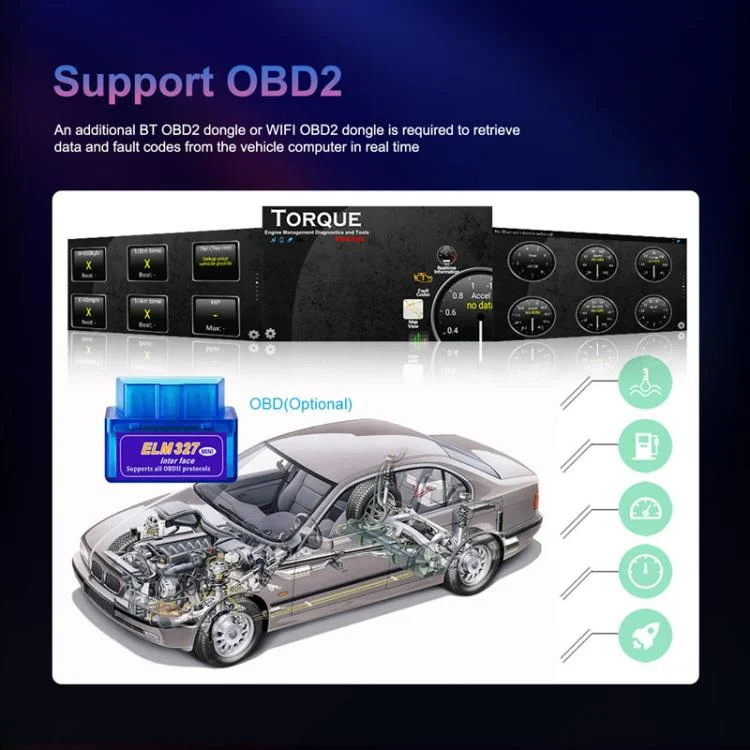 12. Reversing camera/car recorder/MIC support (optional): connect the reversing camera to the device via the video input port and view the rear view of your car on the device screen when shifting to reverse gear; this helps you park safely and avoid obstacles; you can also connect a car recorder to record your driving journey or connect a microphone to improve the voice quality during a conversation