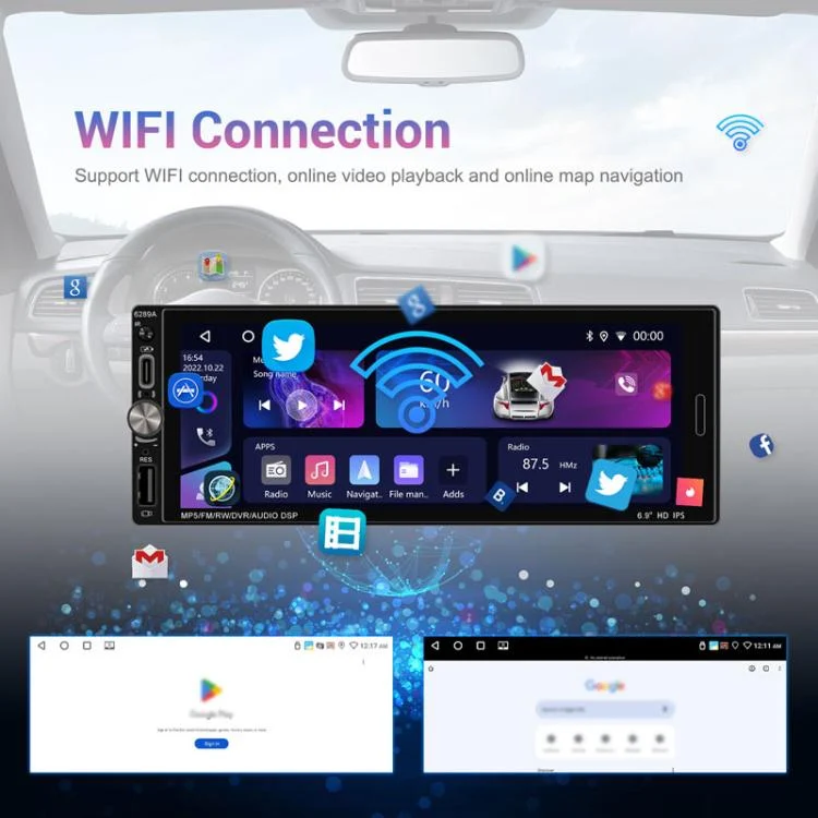 5. Wireless carpet and wireless car: connects your smartphone to your car system, providing access to Google Assistant, navigation, calls, and messaging; it provides a user-friendly interface that promotes safe driving by enabling voice commands and easy access to essential apps