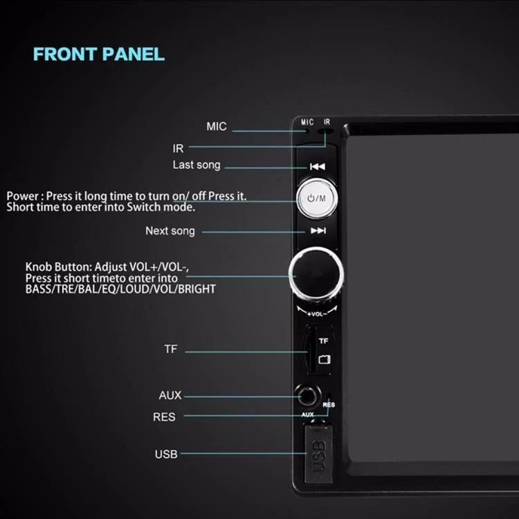 7010B HD 2 Din 7 inch Car Bluetooth Radio Receiver MP5 Player, Support FM & USB & TF Card