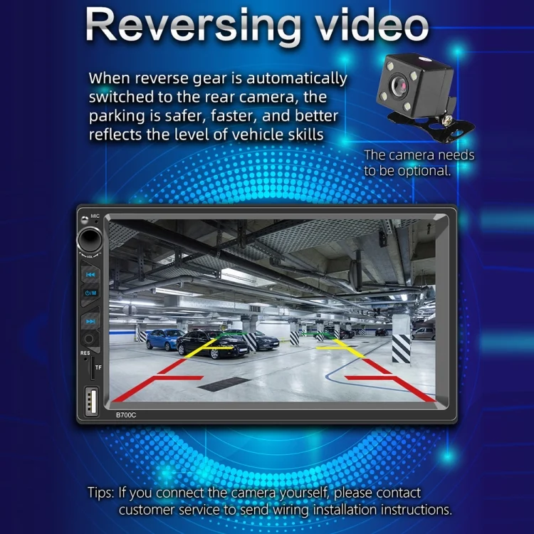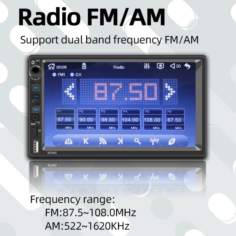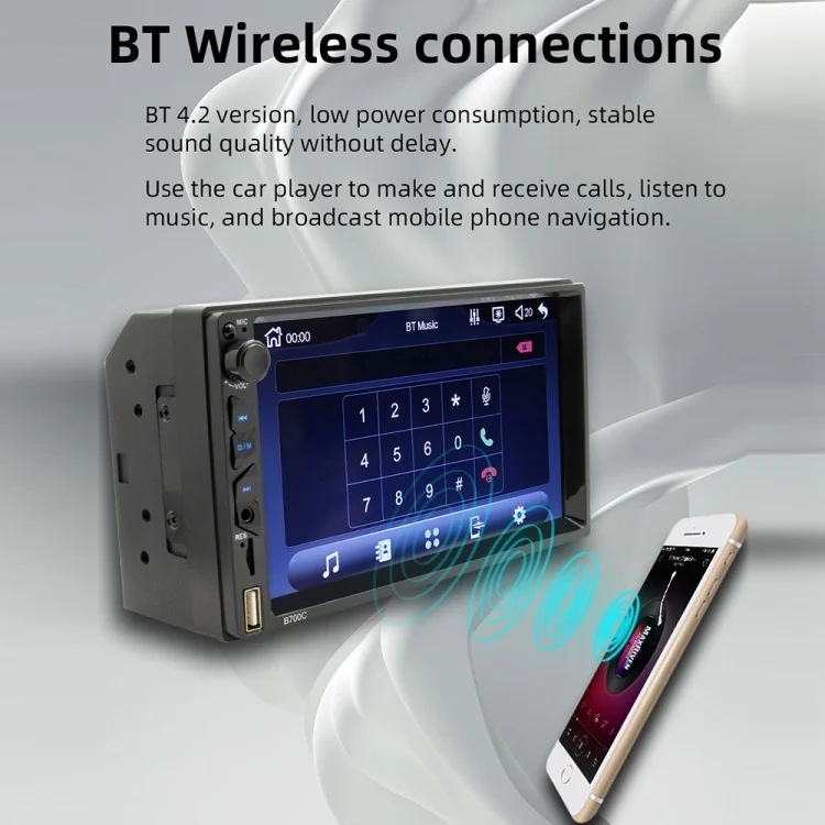 B700C HD 7 inch Universal Car MP5 Player with Wired Carplay, Support FM & Bluetooth & TF Card
