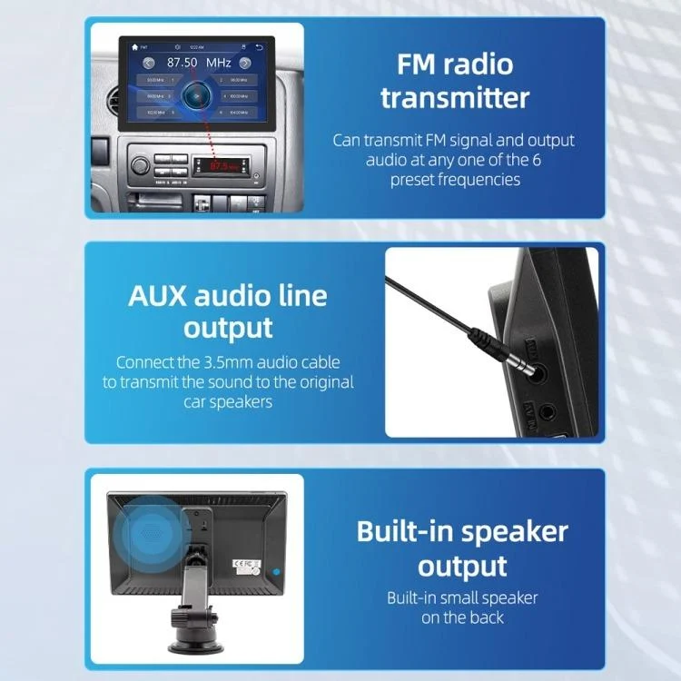 1. Radio frequency transmission function (set the original car radios receiving frequency to the same frequency as selected by this unit, and the audio signal of this unit can be amplified and output to the speaker through the original car machine)