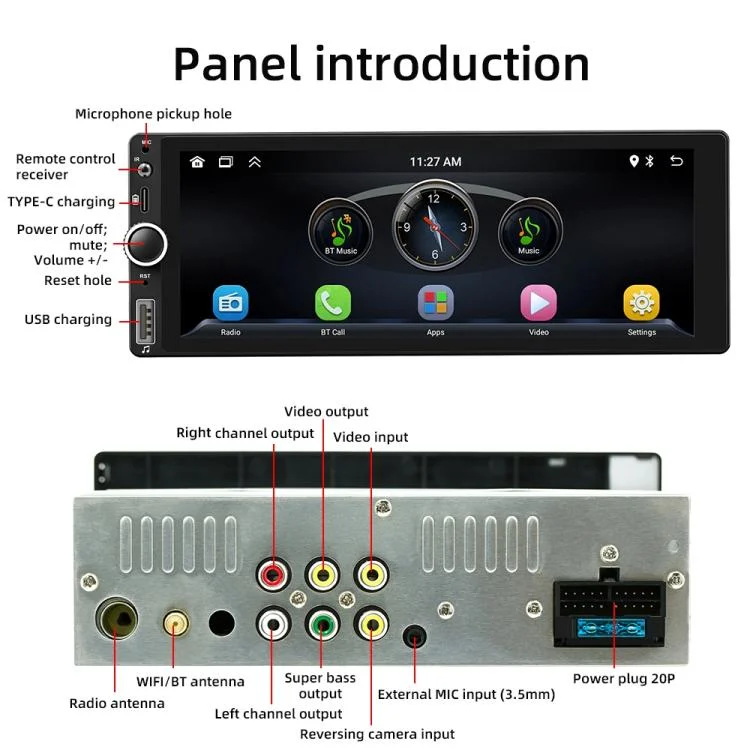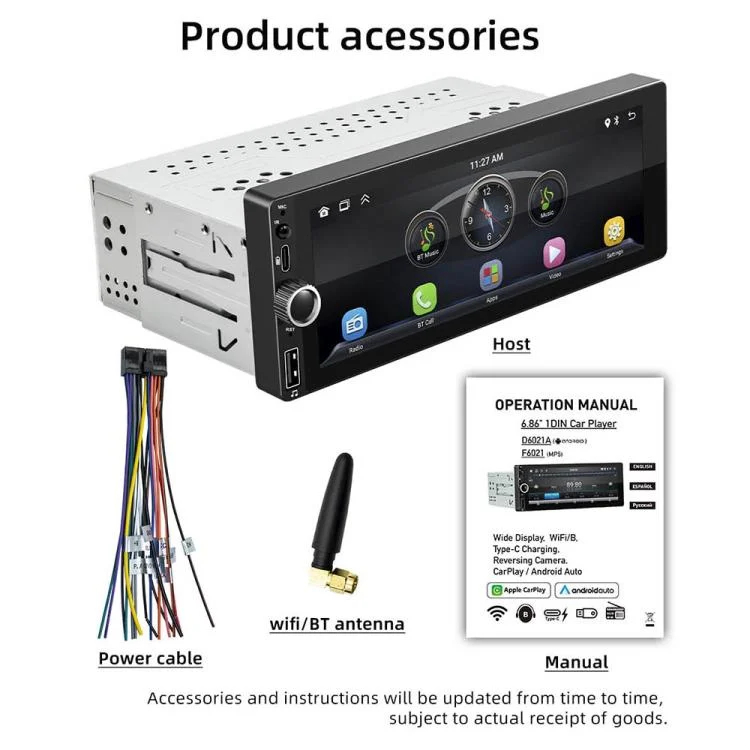 F6021 6.86 inch IPS Screen Car 1Din MP5 Player Support CarPlay & Android Auto
