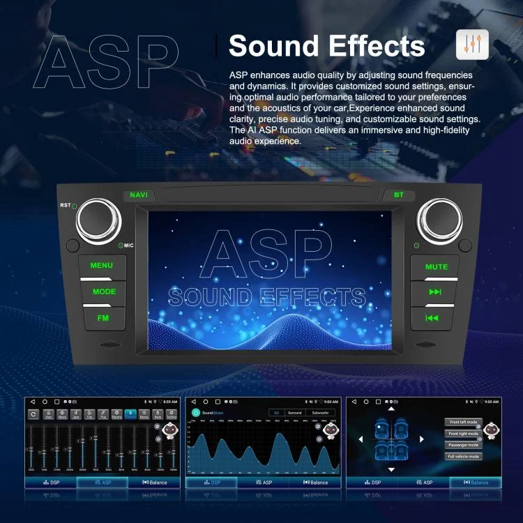 11. ASP: Improve audio quality by adjusting sound frequency and dynamics. Provide customized sound settings to ensure the best audio performance tailored to your preferences and the acoustic characteristics of the car, experience enhanced sound clarity, precise audio tuning and customizable sound settings.