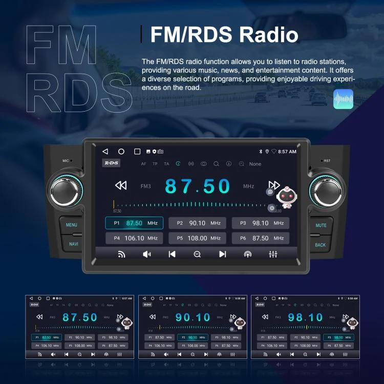 9. FM/RDS radio: Receive broadcast signals from various radio stations with clear sound. Listen to music, newsletters and traffic information at any time.