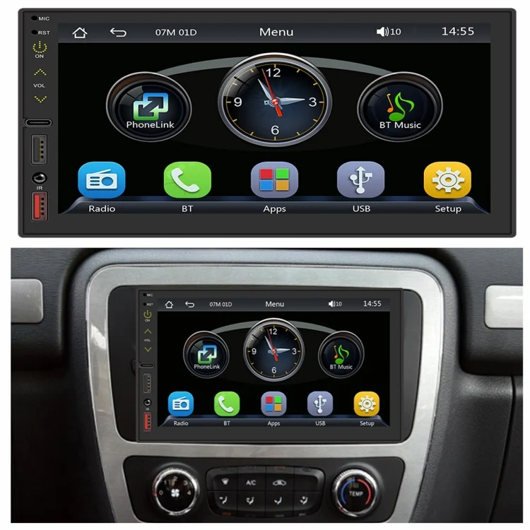 FS02C 7 inch HD Capacitive Touch Screen Car MP5 Player Supports Bluetooth Reverse&Mobile Phone Internet&Wired CarPlay + Android Auto