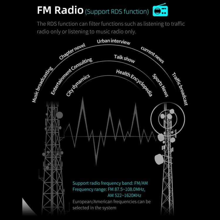 3. Radio frequency: FM 87.5~108.0MHz AM522-1620KHz (supports RDS function optional)