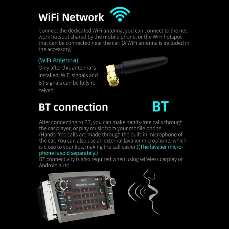 11. Mobile phone interconnection (Android/iOS), wireless CARPLAY, wired Android AUTO