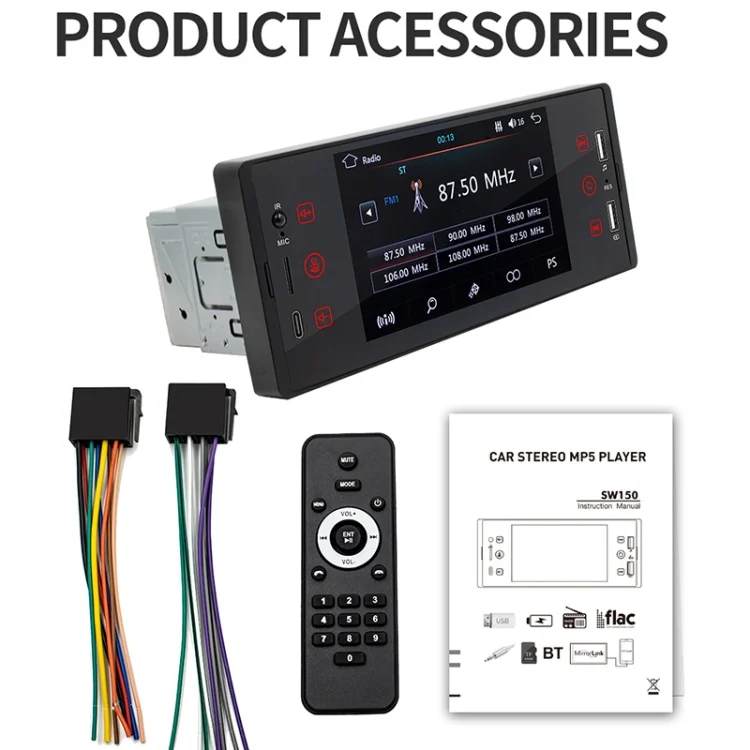 SW150 5-inch HD Touch Screen Dual USB Car MP5 Player Bluetooth Reversing Video Card U Disk Radio