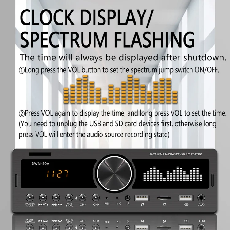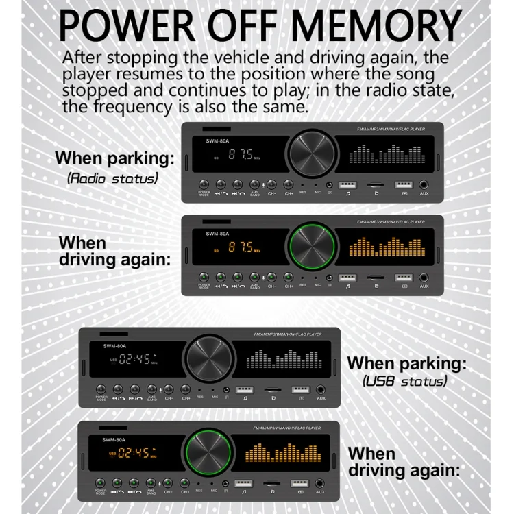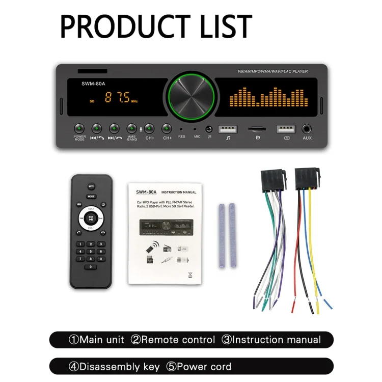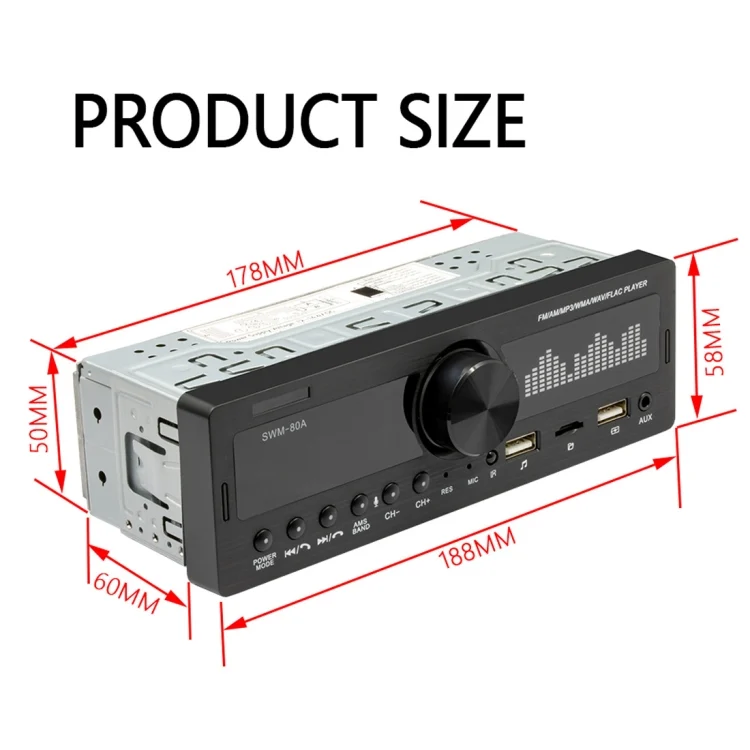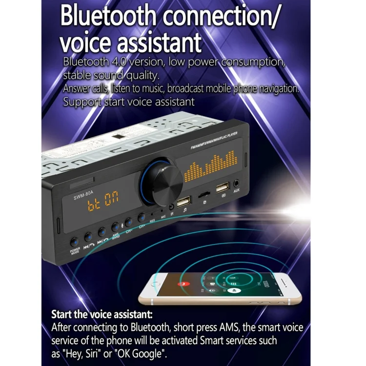 SWM-80A DC12V Car MP3 Support FM / AM & Bluetooth & Mobile Phone Voice Assistant