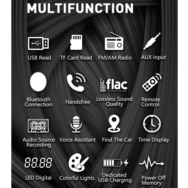 11. Supported audio format: MP3/WMA/WAV/FLAC