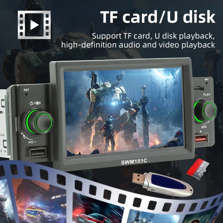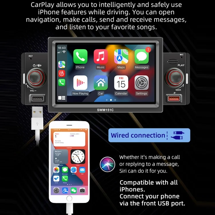 SWM151C 5 inch Portable Car MP5 Player Support CarPlay / Android Auto