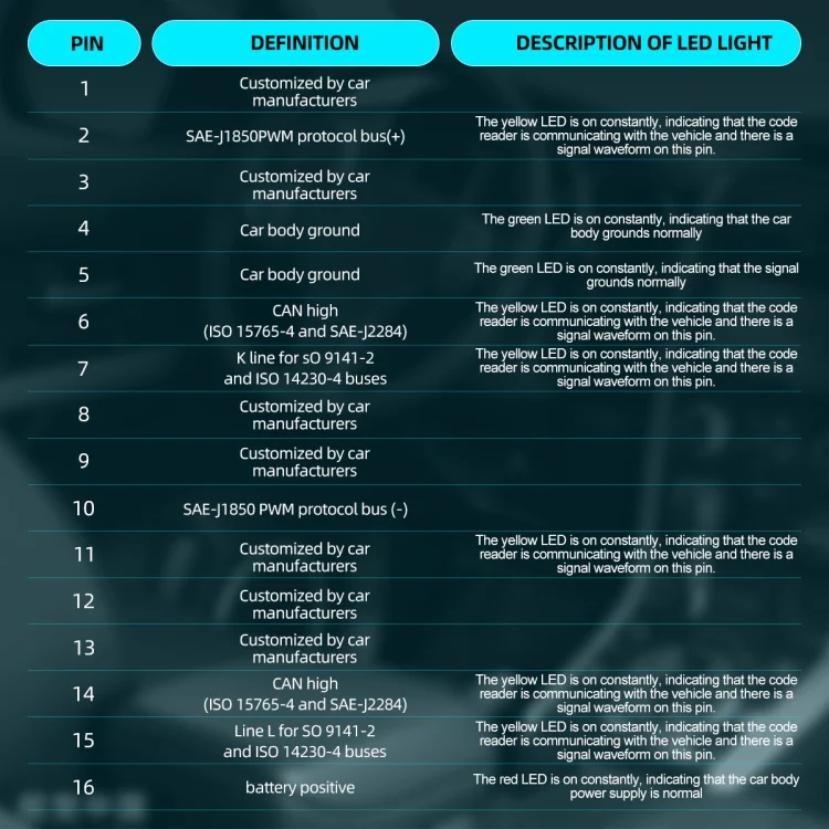 2. Easily access each of the 16 pins while scan tool communicating with vehicle.