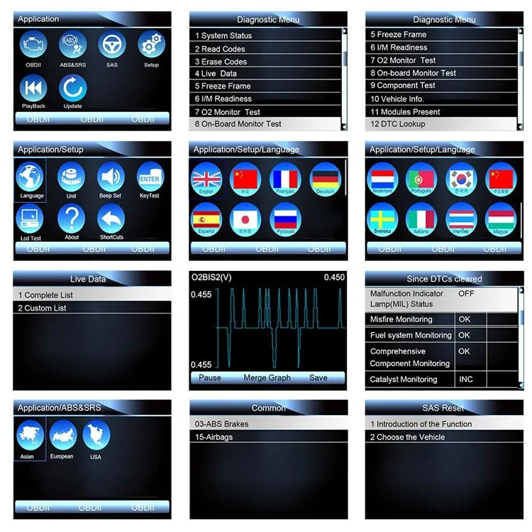 3. This obd2 scanner with ABS and SRS provides in-depth diagnosis of anti-lock brake system and SRS/airbags, and can also perform airbag light reset/SAS (steering angle sensor) adjustment/oil light reset daily reset service. These issues will be restored after the car fault is repaired. Note: Some classic vehicles without electronic control systems do not support reset service.