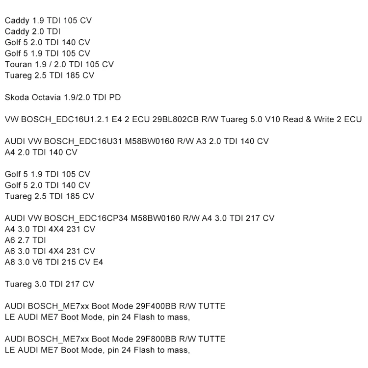 2. Working on EDC16,EDC15, MEx.x ,DELCO and many more engine4s ecu. It is compatible with the newest modern diesel TDi, HDi, JTD, and petrol cars.